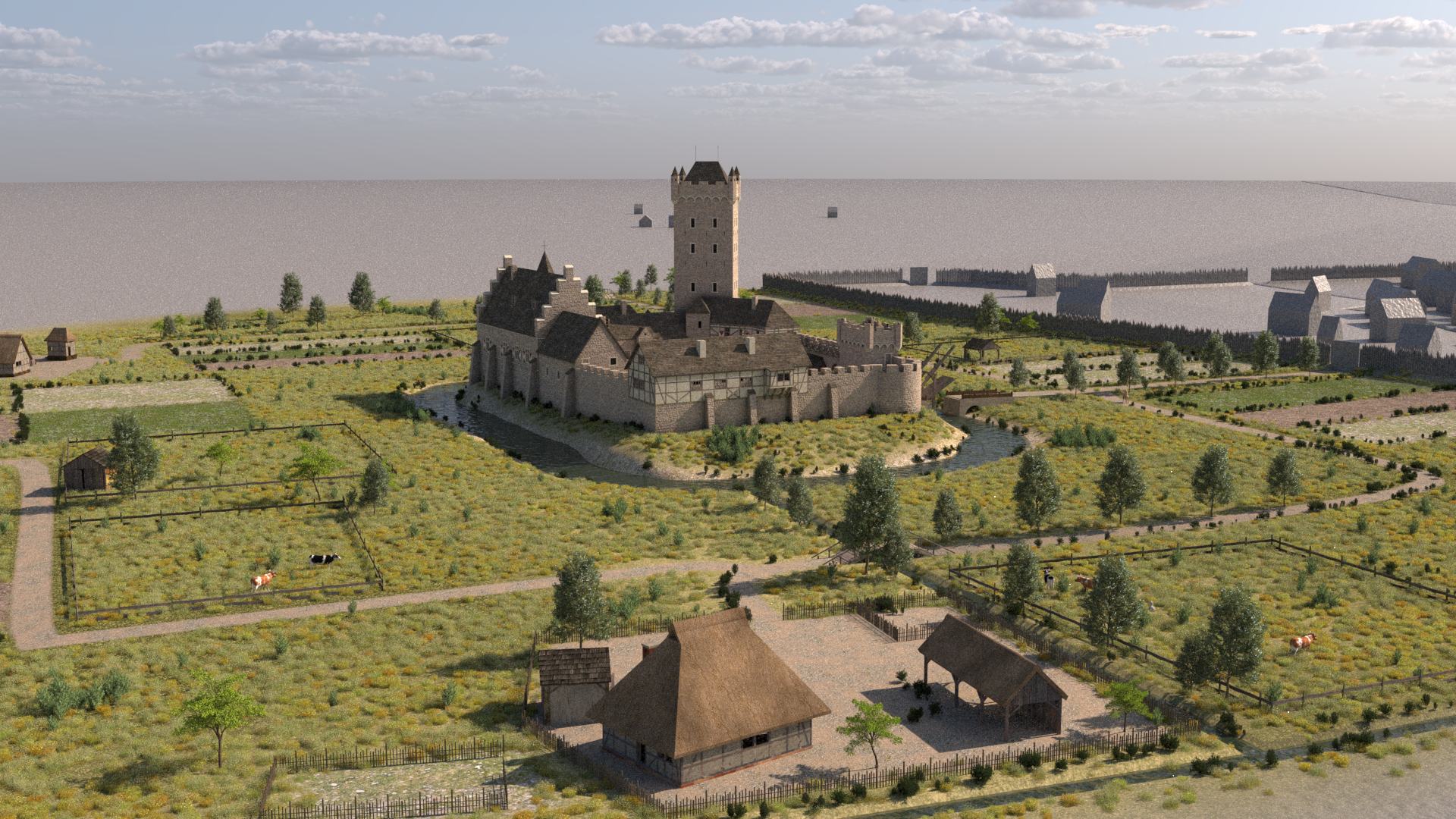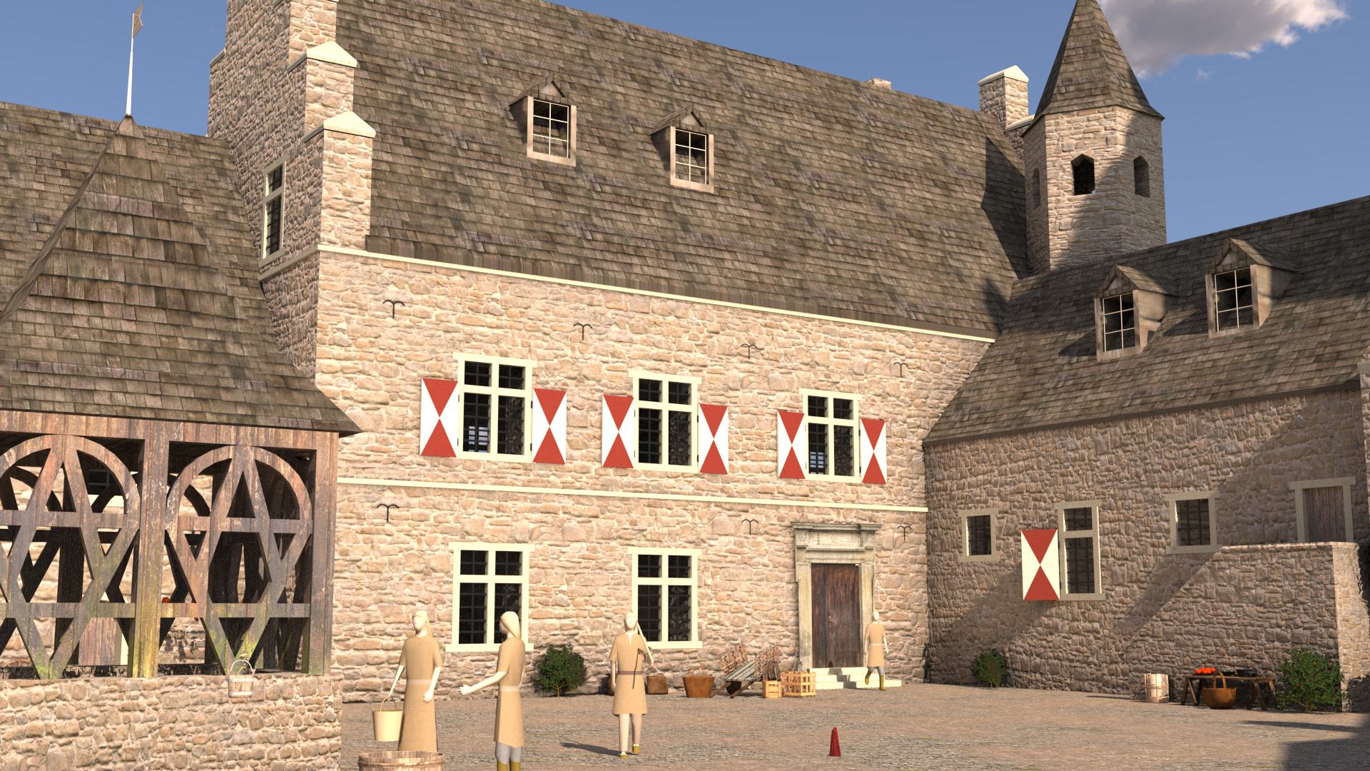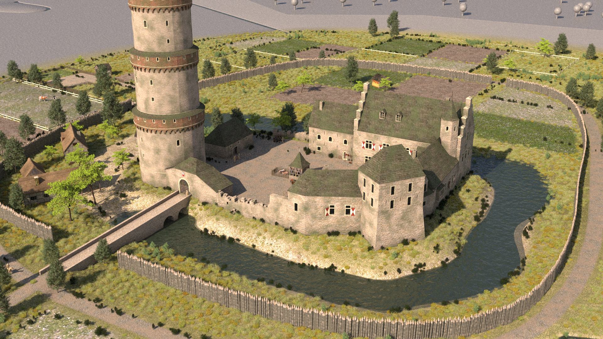 Gesprächen wurde die 3D-Rekonstruktion und Animation von vier Zeitebenen vereinbart. Im kleinen 2er-Team, d.h. Justin Weller und Frank Dießenbacher, entstanden von Frühjahr bis Ende 2022 Rekonstruktionen der Burganlage in den Zeitebenen 1000, 1280,1650 und 1909.