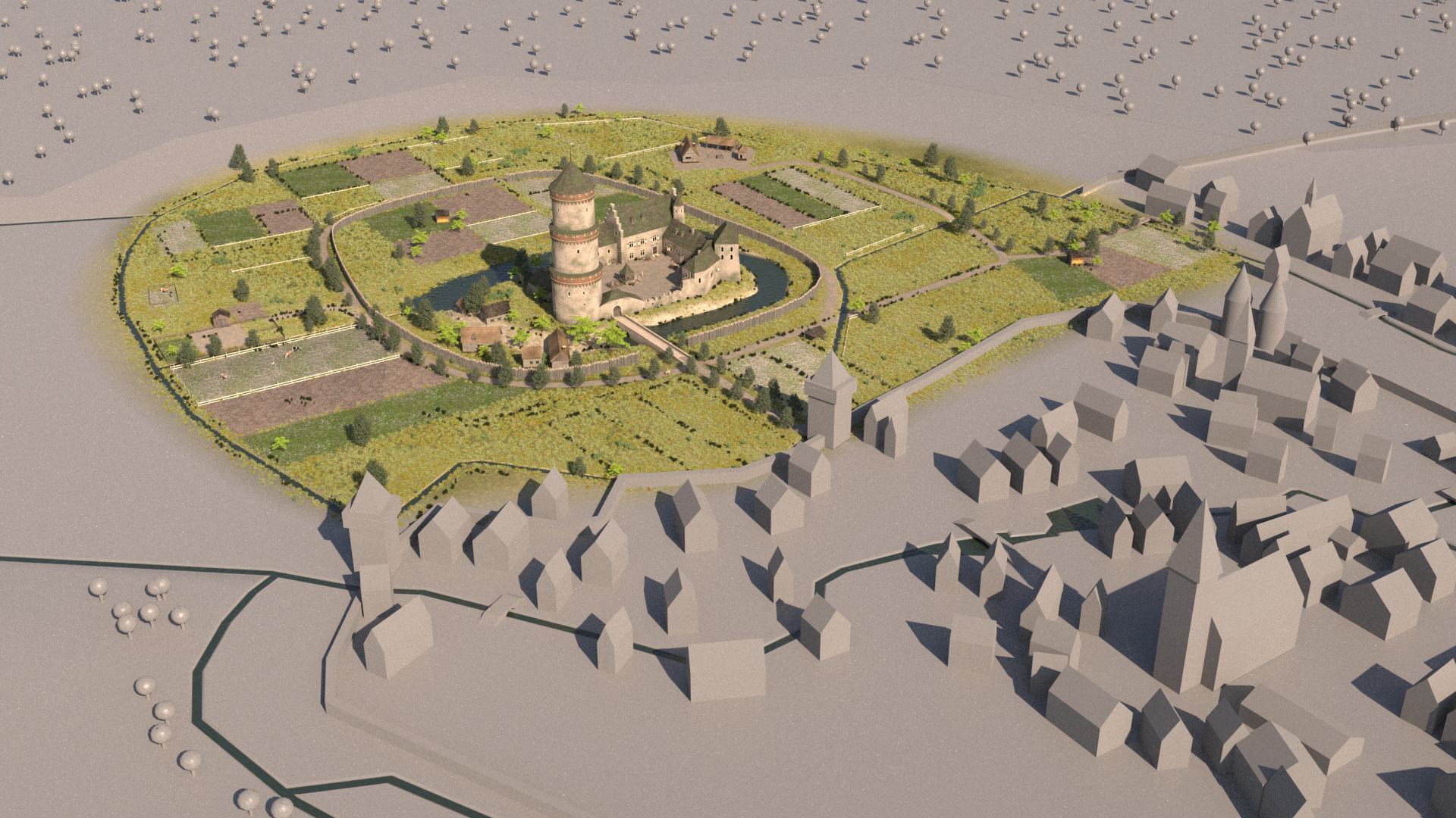 Stadtjubiläum. Aus diesem Anlass ist u.a. die Visualisierung der Keimzelle der Stadt, der Burg,