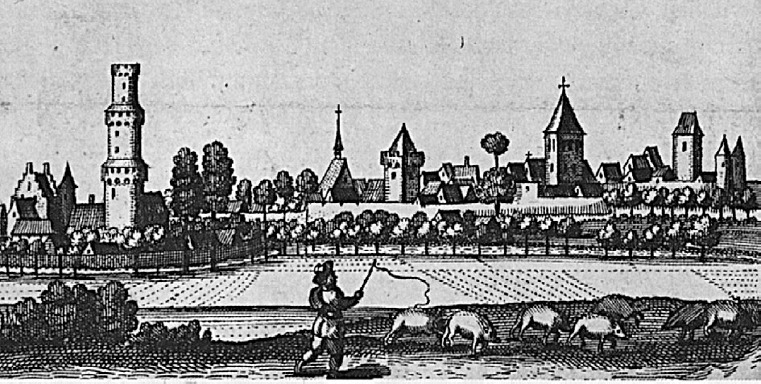 Der sogenannte "Feltmann-Stich". Erste bildliche Darstellung von Burg und Stadt.