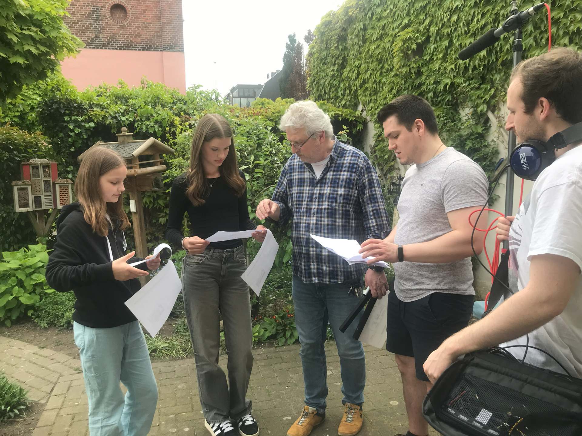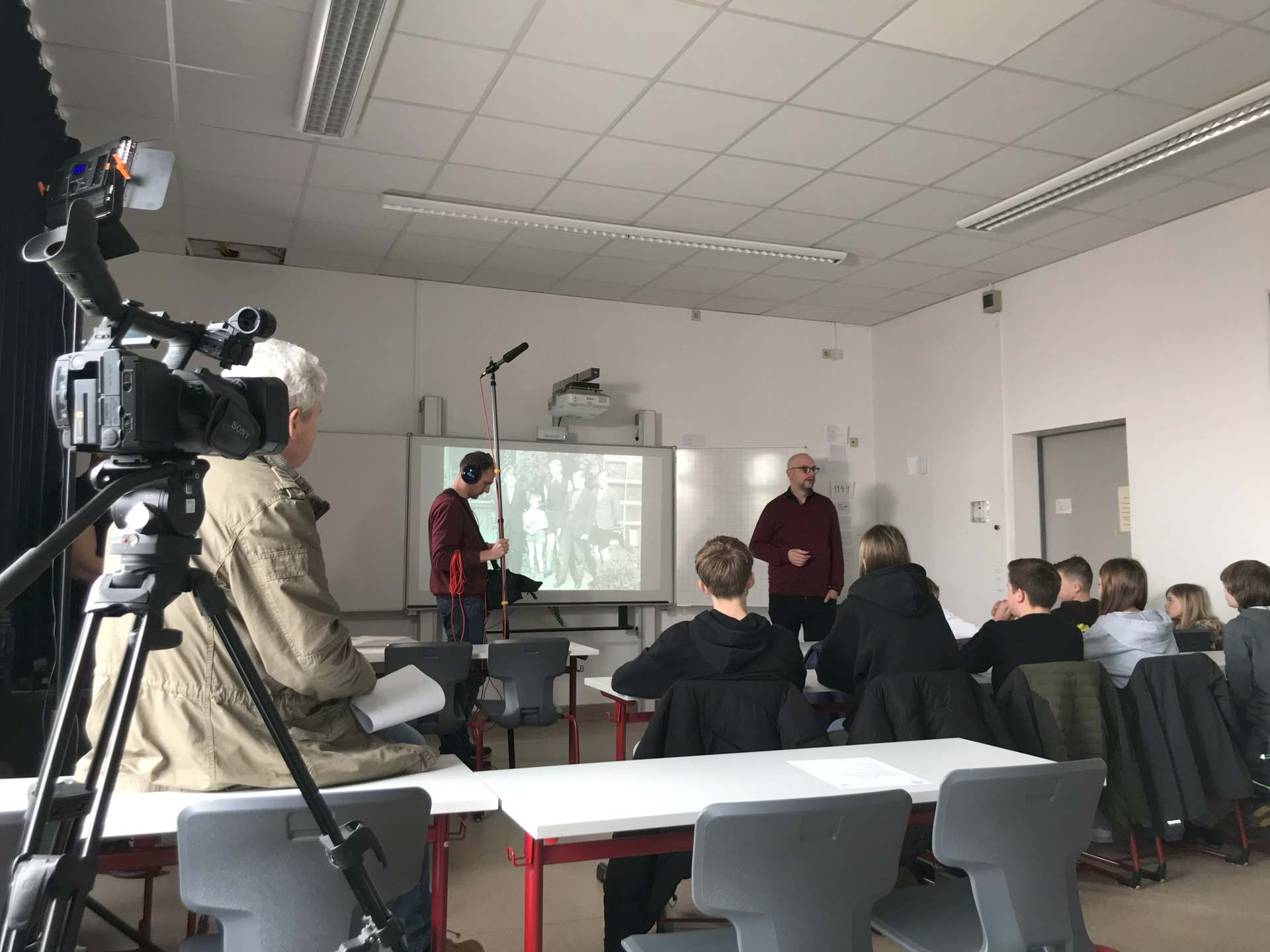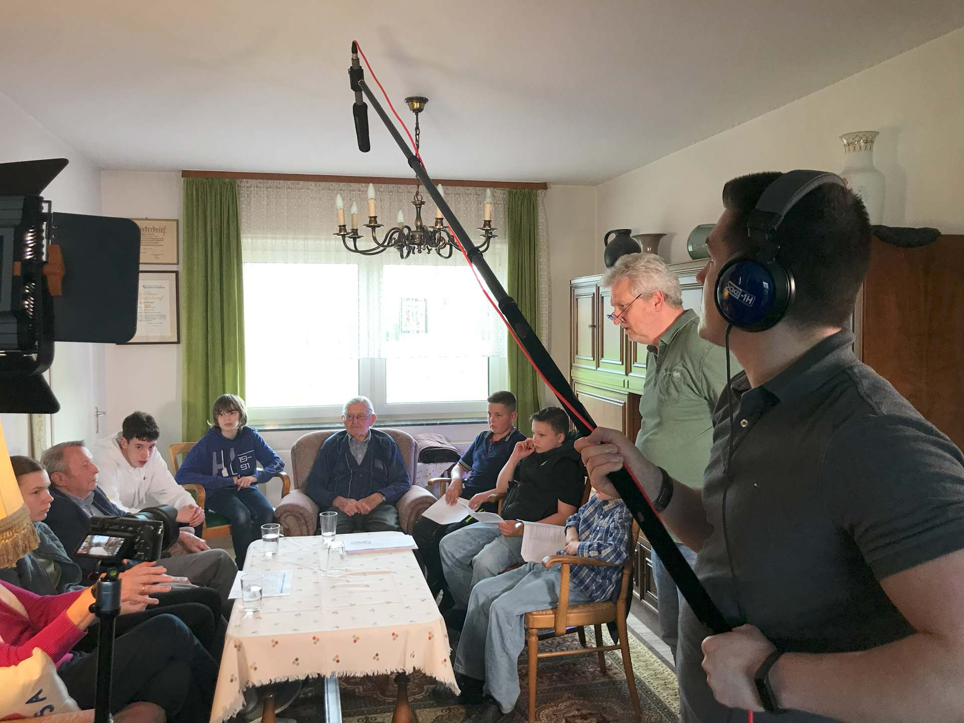 ... mit dem Heimatverein Büderich als unseren Auftraggeber war ausgesprochen fruchtbar und angenehm. Oft haben wir bei Rudolf Friedhoff in Büderich zusammengesessen, Dreharbeiten und Organisatorisches besprochen. Er engagierte sich als Projektleiter in den 2 Jahren Laufzeit ganz besonders, beschaffte die Mittel, lud Senioren und Jugendliche ein, zunächst zu einem Info-Nachmittag, dann zu den Dreharbeiten. Ob in der Grundschule in Büderich, dem AV-Gymnasium in Wesel oder der Caritas. Und er stieß immer auf offene Ohren.